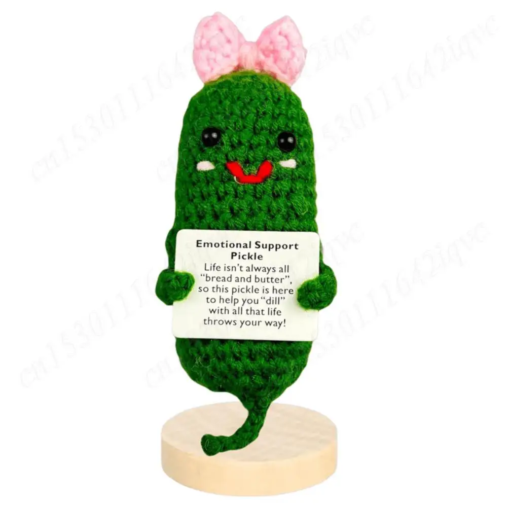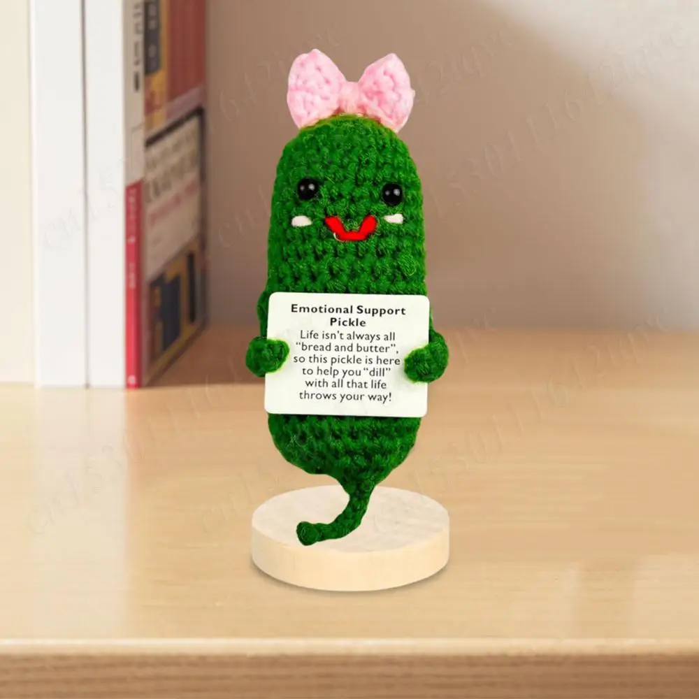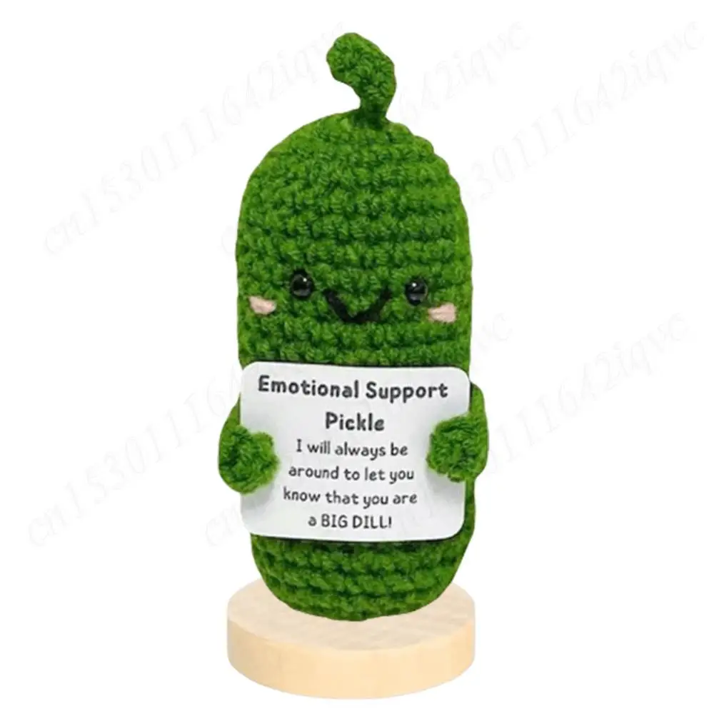 Cute Crochet Christmas Pickle Knitting Doll Positive Potato Pickle Handmade Emotional Support Pickled Cucumber Gift Crochet Doll